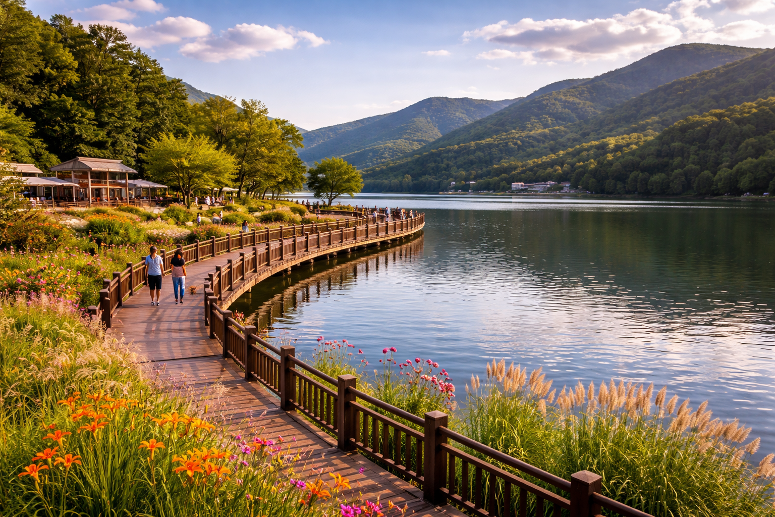2025년 5월에는 수석정 수변공원까지 완공되었습니다. 산책로, 전망데크, 피크닉장, 느티나무 언덕 등이 잘 정비되어 있어서 가벼운 휴식을 즐기기에도 좋았습니다. 특히 이른 아침에 가면 물안개가 호수 위로 가볍게 깔려 몽환적인 분위기가 연출되고, 해 질 무렵엔 황금빛 햇살이 길 위로 드리워져 산책의 감성을 한층 더 깊게 만들어 줍니다.
